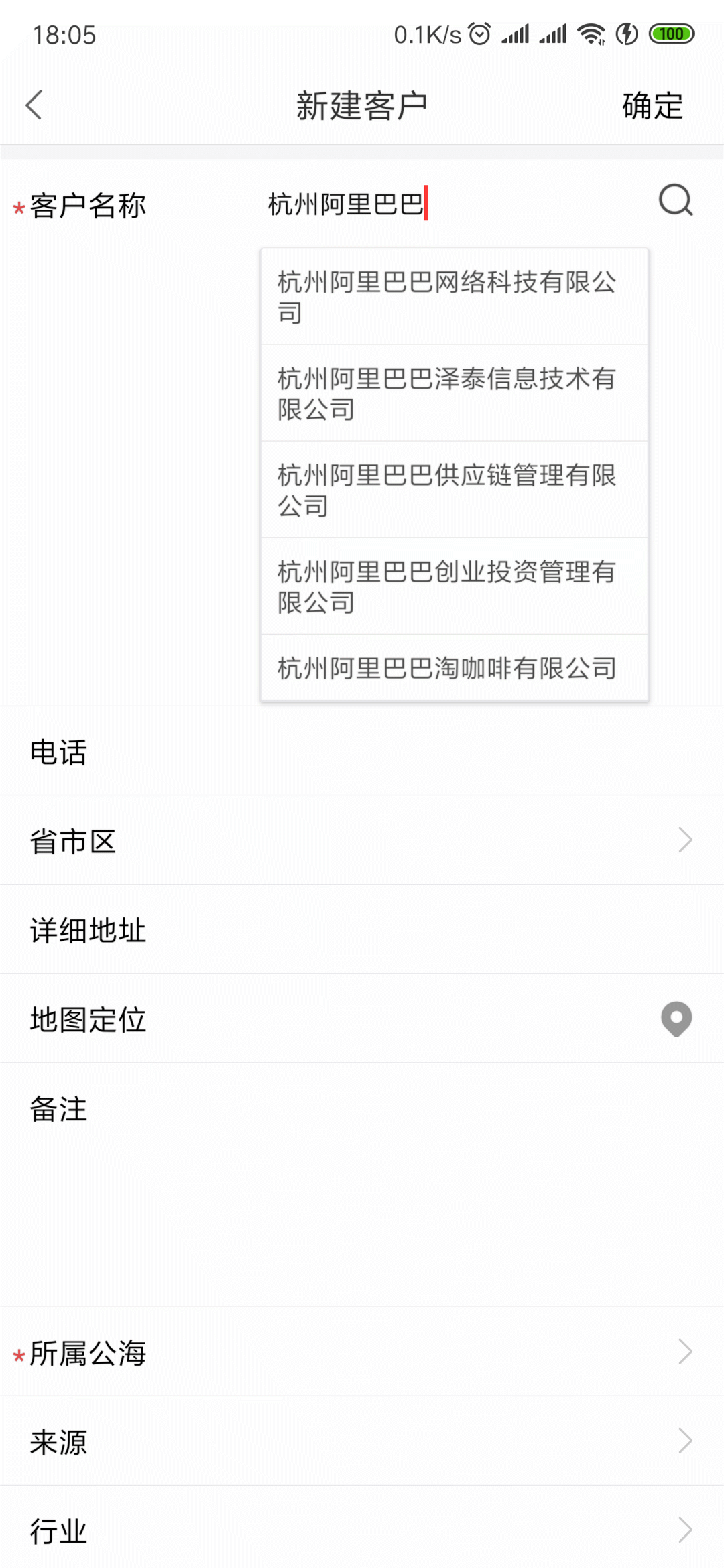 如輸入關(guān)鍵字“杭州阿里巴巴”后,系統(tǒng)將在下拉選項(xiàng)框中顯示抓取到的所有包含“杭州阿里巴巴”關(guān)鍵字的企業(yè)名稱(chēng),選擇相應(yīng)的企業(yè)名稱(chēng)后,該企業(yè)的地址、注冊(cè)資本、法人等工商信息將全部呈現(xiàn)出來(lái),銷(xiāo)售人員只需點(diǎn)擊“回填”,該企業(yè)的工商信息就能自動(dòng)填充到系統(tǒng)中。此項(xiàng)功能將大大提高銷(xiāo)售線索/客戶信息創(chuàng)建的效率,并保證數(shù)據(jù)的準(zhǔn)確性,很好地解決銷(xiāo)售撞單、搶單等問(wèn)題。