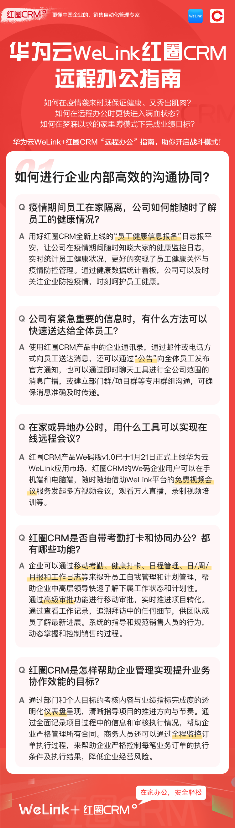 共克時艱,華為云WeLink攜手紅圈CRM遠程辦公指南!