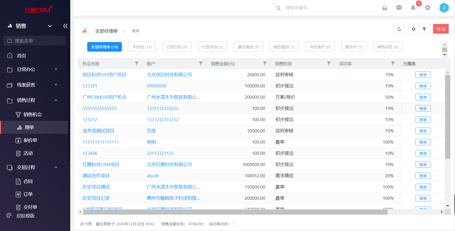 在銷售管理方面,2020 年紅圈 CRM 也有了長足的改進,新增了交付單和報價單管理,為實現(xiàn) CPQ 奠定基礎(chǔ)。增加變更單,支持合同變更。新增找線索功能,幫助企業(yè)高效獲取銷售線索。還有優(yōu)化改進理單和公海池等等。在銷售管理方面的不斷打磨演進,使紅圈 CRM 更好的服務(wù)于裝備制造行業(yè)。