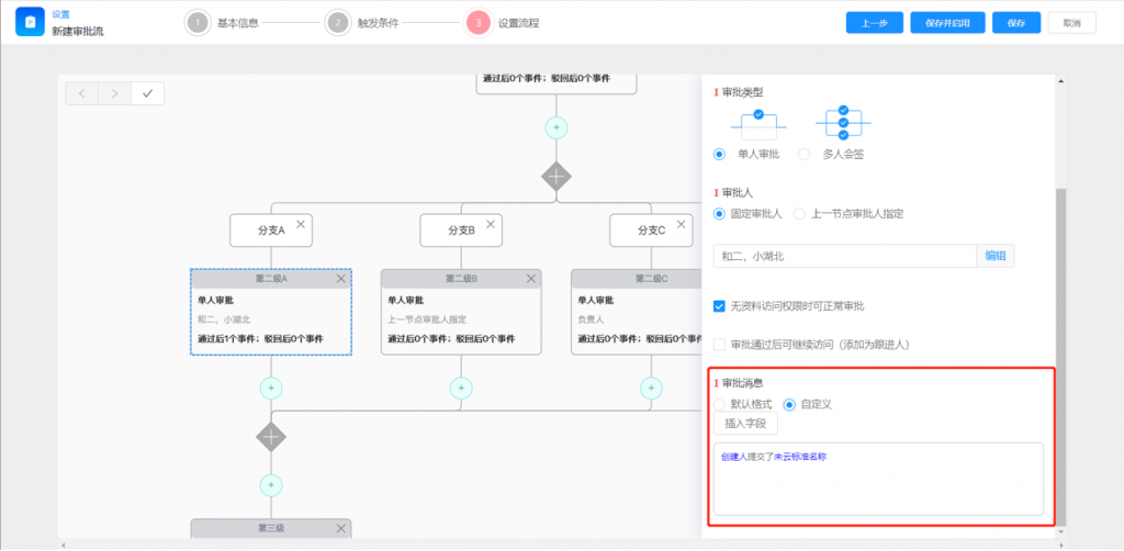 4)審批待辦消息支持自定義配置,可將重點(diǎn)審批字段在待辦消息里透出,方便審批人快速獲取信息,是被優(yōu)先級等
