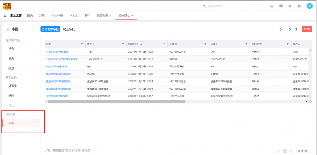 3)每個審批單可配置顯示字段,可以導(dǎo)出,方便人事或行政等人員,對公司全部審批單進(jìn)行查看和分析