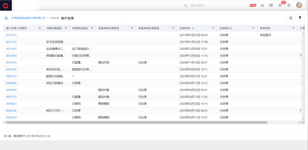1)新建編輯數(shù)據(jù)時,查找關(guān)系字段支持快速搜索和選擇,免除進(jìn)入彈窗頁的多級操作,直接通過主標(biāo)題查找完成選擇,提高數(shù)據(jù)錄入效率