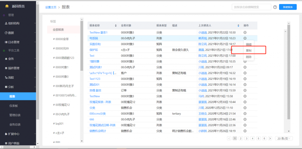 1)報表支持復(fù)制,方便同一個對象的多條件報表快速創(chuàng)建