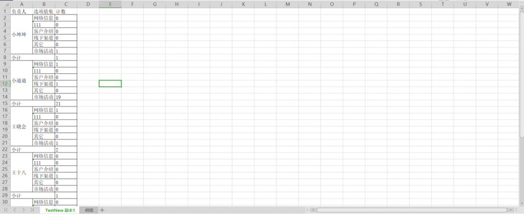 6)分類和矩陣式報表導(dǎo)出時,維度和小計合計的單元格會進(jìn)行合并