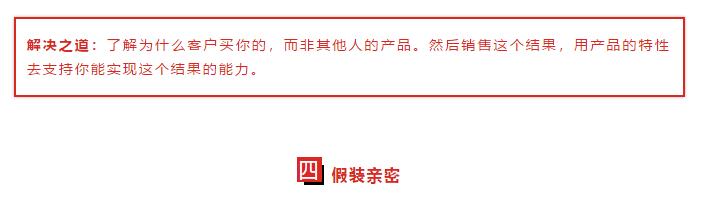 無論是是否喜歡,那一刻,你在客戶心中的位置是"一個人正在向我銷售東西",你正在進行一場激烈的戰斗來贏得信任。在這樣的環境下,你做的最錯的事情是通過一虛情假意的行為來套詞。