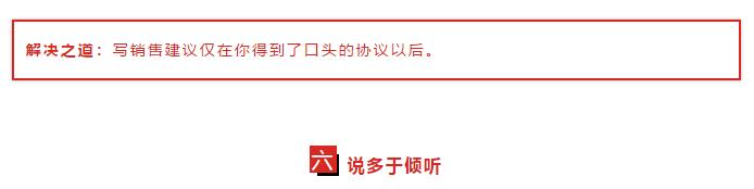 雖然建議偶爾會給銷售帶來機會,大多數情況下,需要流程的建議最好在確定了問題,同時也確定了解決方案的時候在進行。因為寫建議需要花時間和辛苦,除非你已經在銷售過程中,否則這是一個壞的投資。