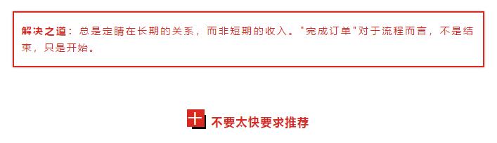 在你完成這個訂單之后,真正的工作才開始,因為你開始建立某種關系,以致于你可以產生后續業務,以及推薦銷售,而這兩者比贏得新業務更容易,也更有利潤。