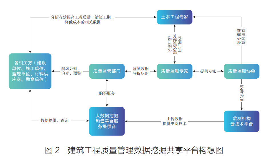 建立基于大數(shù)據(jù)挖掘的數(shù)據(jù)共享平臺,使質(zhì)量相關(guān)數(shù)據(jù)能夠在相關(guān)各方之間有效地傳輸與使用,進(jìn)而提高企業(yè)工程質(zhì)量管理的水平及政府監(jiān)管效率。