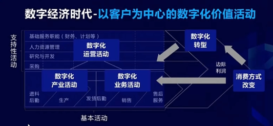 數(shù)字時代的來臨帶來的最大變化是什么?支持性活動可以產(chǎn)生價值,基本活動也可以產(chǎn)生價值,整個上下游還是可以產(chǎn)生價值。最后發(fā)現(xiàn)我們產(chǎn)生價值的空間變多了。原來只在一條鏈上,而且這條鏈上只有基本活動產(chǎn)生價值,其他只是改變成本和價值。可是數(shù)字技術(shù)來了之后,所有的環(huán)節(jié)都可以產(chǎn)生價值,無論是支持活動、基本活動,還是上下游的產(chǎn)業(yè)活動。我們告訴各位,這是源于消費方式的改變。