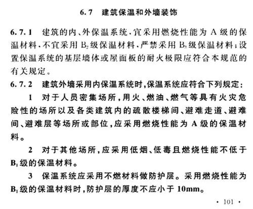 自2023年6月1日起實施的《建筑防火通用規范》(GB55037—2022),對建筑外保溫材料規定得更為細致,對除特定情況外的獨立建造的老年人照料設施、人員密集場所等,要求采用燃燒性能為##的保溫材料或制品。