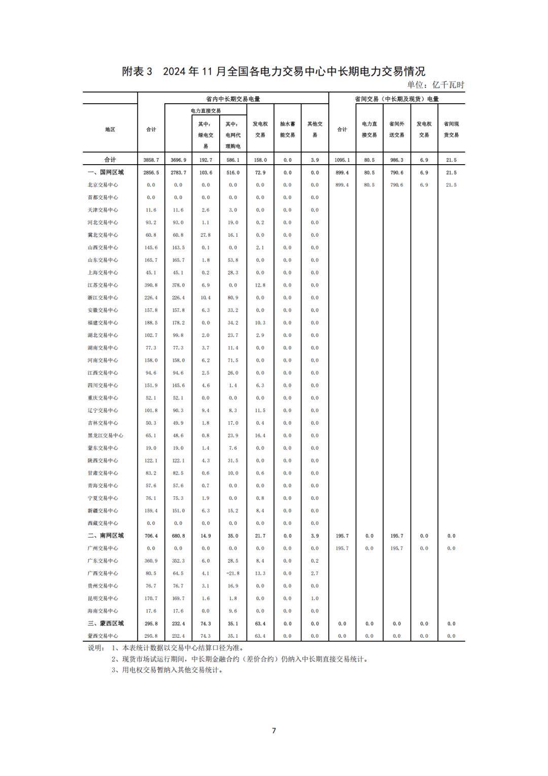 分區(qū)域看,1-11月,國(guó)家電網(wǎng)區(qū)域中長(zhǎng)期電力直接交易電量合計(jì)為32001.1億千瓦時(shí),同比增長(zhǎng)5.4%;南方電網(wǎng)區(qū)域中長(zhǎng)期電力直接交易電量合計(jì)為7759.8億千瓦時(shí),同比增長(zhǎng)5.2%;蒙西電網(wǎng)區(qū)域中長(zhǎng)期電力直接交易電量合計(jì)為2430.6億千瓦時(shí),同比增長(zhǎng)11.1%。