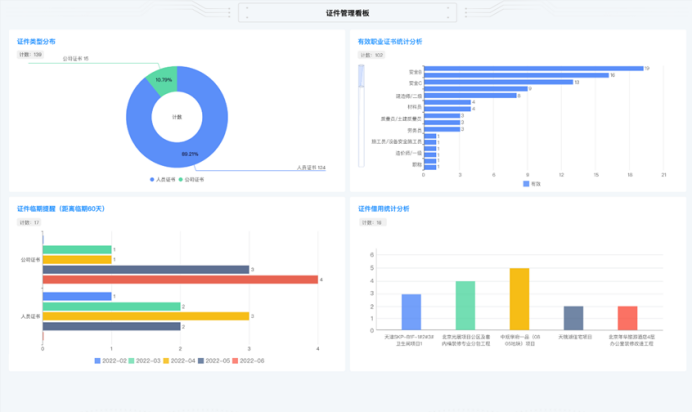 證照到期智能提醒:資質(zhì)證書(shū)、保函等關(guān)鍵文件臨近過(guò)期時(shí),系統(tǒng)自動(dòng)觸發(fā)通知,避免因證照失效導(dǎo)致流標(biāo)或罰款。