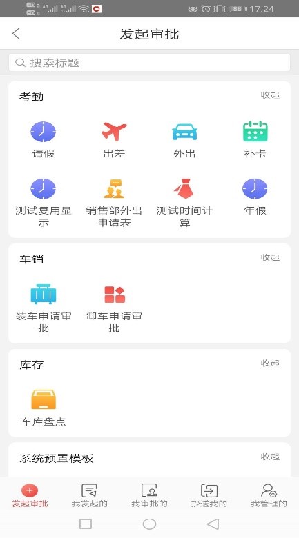 高級審批,為平臺(tái)所有審批流程,包括請假、出差、外出、補(bǔ)卡等。
